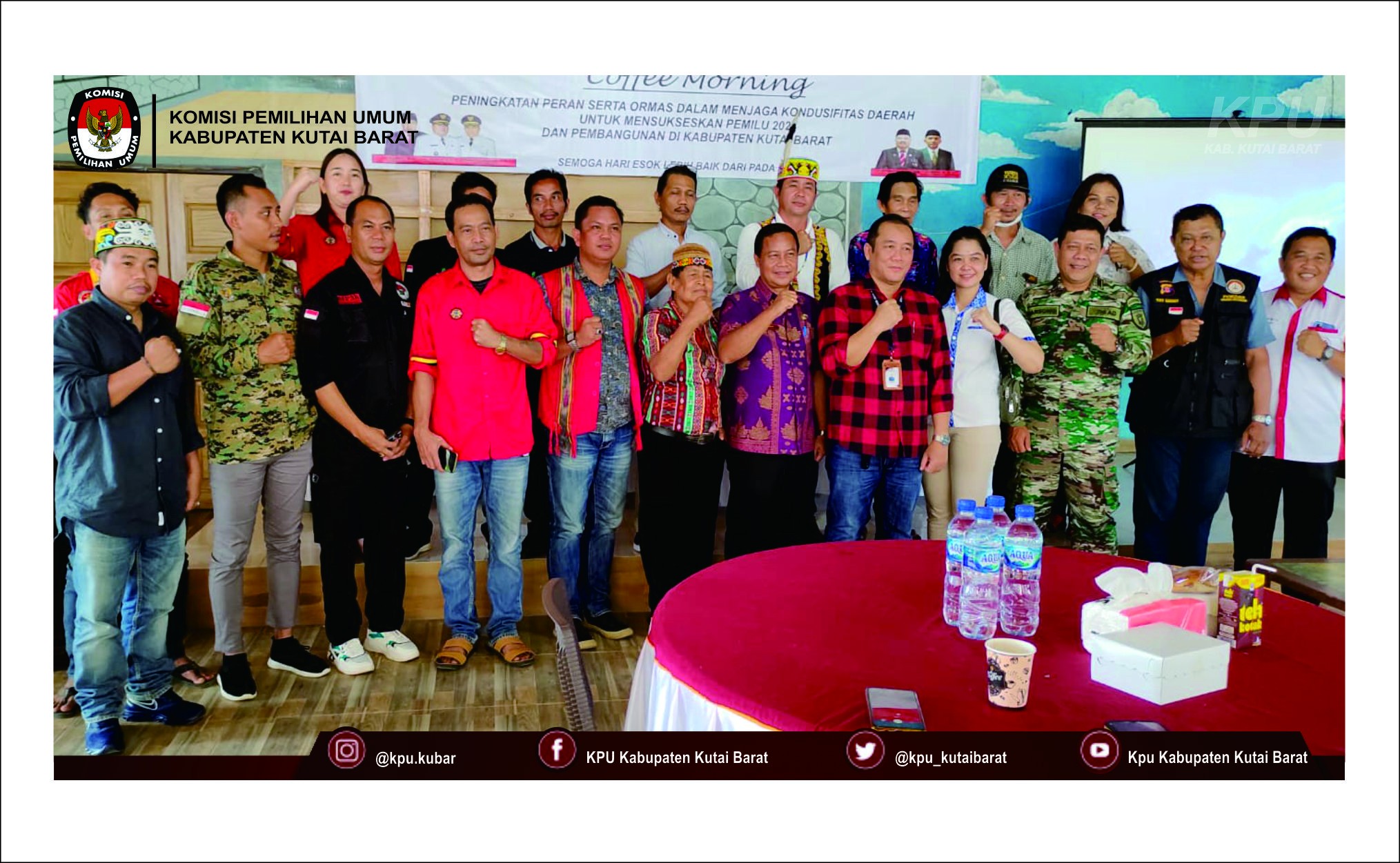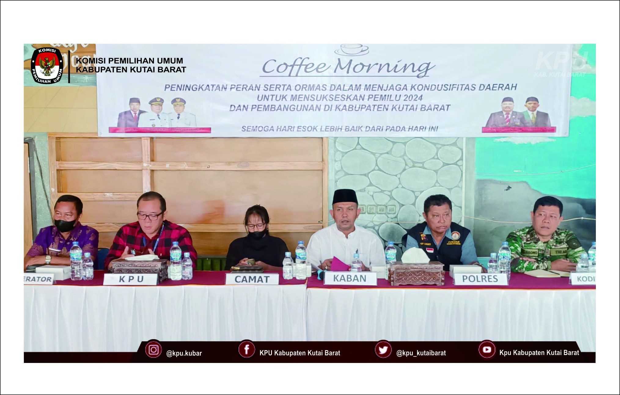 Ketua KPU Kubar Arkadius Hanye, SH menjadi narasumber dalam acara Coffee Morning "Peningkatan peran dalam menjaga kondusifitas daerah untuk mensukseskan pemilu 2024 dan pembangunan di Kabupaten Kutai Barat" yang diselenggarakan oleh Badan Kesatuan Bangsa dan Politik Kabupaten Kutai Barat di Joglo Hotel sidodadi sendawar, Jumat 26 Mei 2023