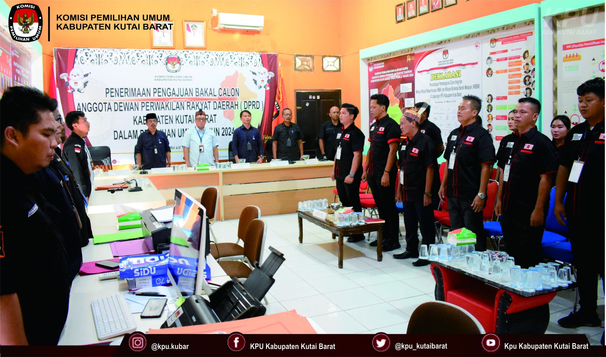 Delegasi partai diterima oleh Ketua KPU Kubar Arkadius Hanye, Anggota KPU Kubar Simon Sebo Raga, Johanes Nuel, Rintar Pasaribu, Laurensius Lejau, dan Sekretaris KPU Kubar Syamsuniq, beserta Seluruh Kepala Subbagian Sekretariat KPU Kubar dan disaksikan oleh Bawaslu Kubar