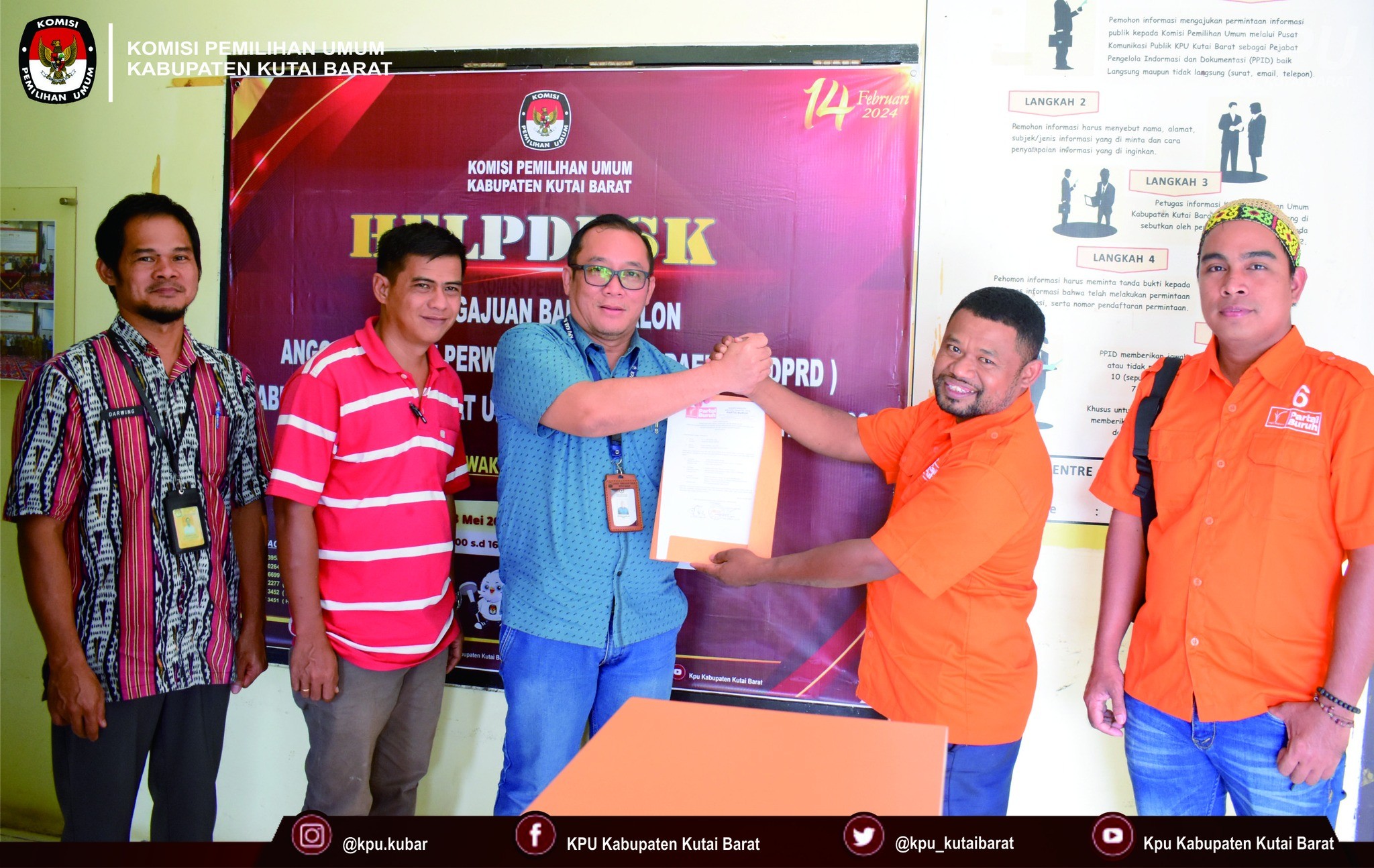Delegasi partai diterima oleh Ketua KPU Kubar Arkadius Hanye, Anggota KPU Kubar Simon Sebo Raga, Johanes Nuel, Rintar Pasaribu, Laurensius Lejau, dan Sekretaris KPU Kubar Syamsuniq, beserta Seluruh Kepala Subbagian Sekretariat KPU Kubar dan disaksikan oleh Bawaslu Kubar