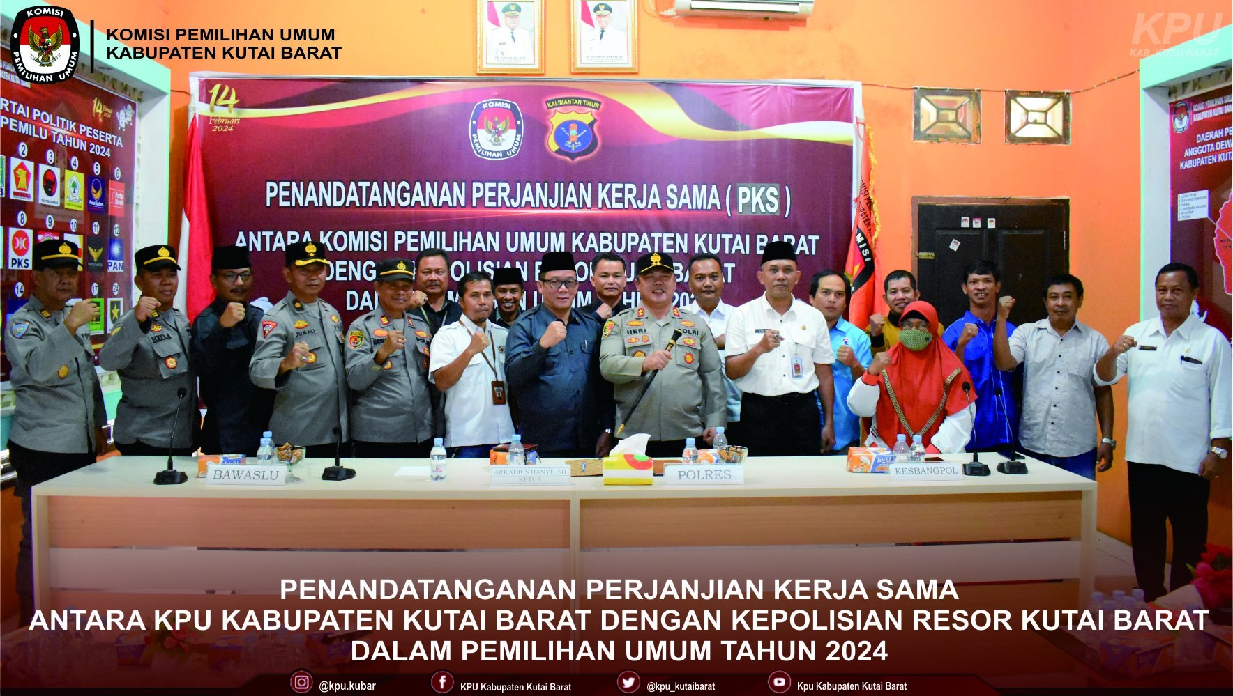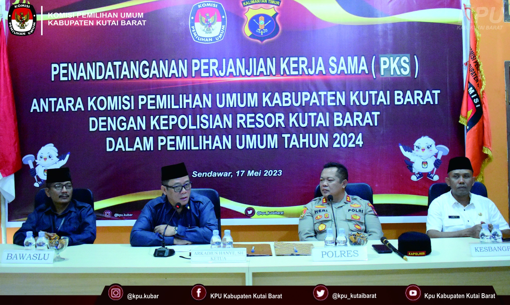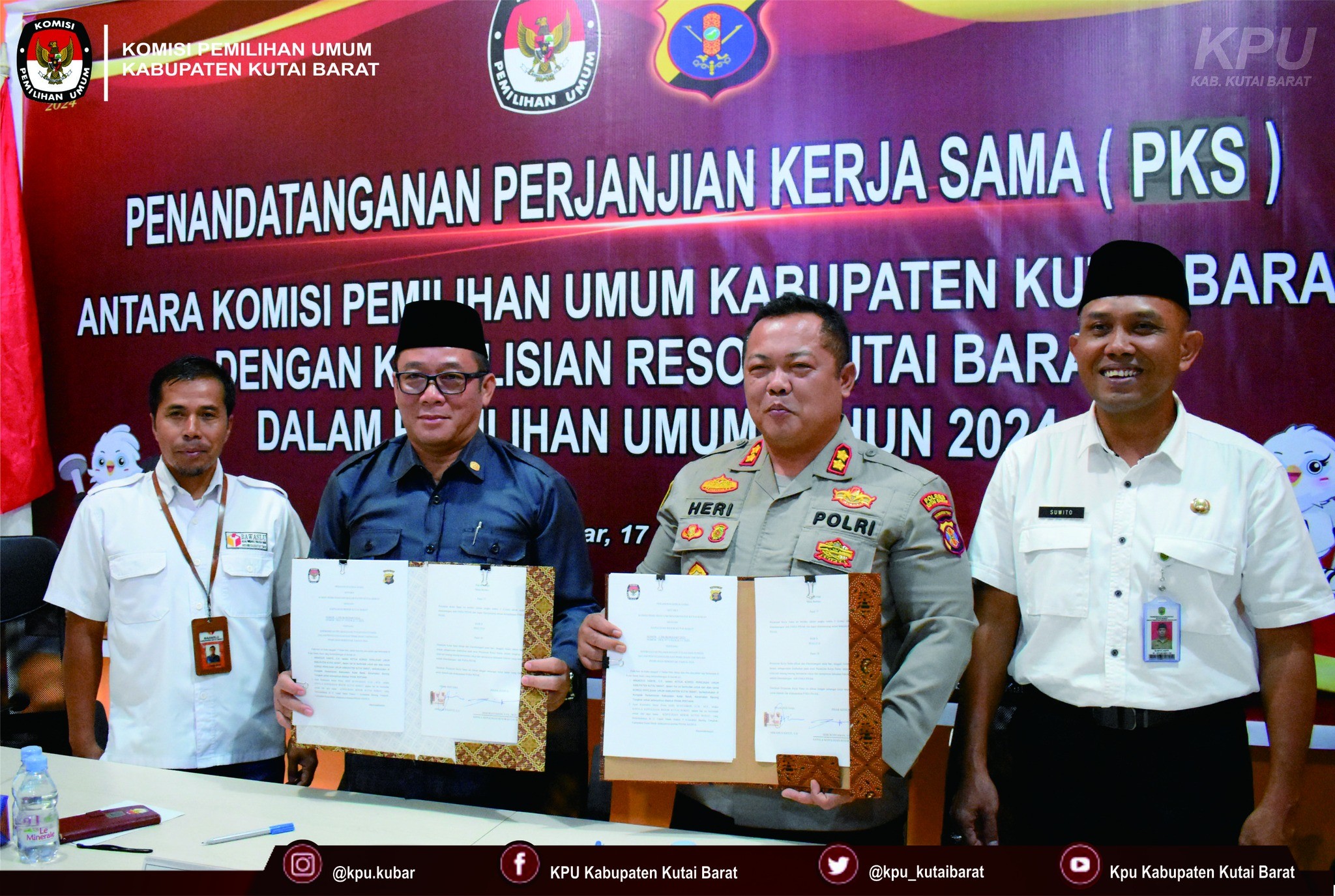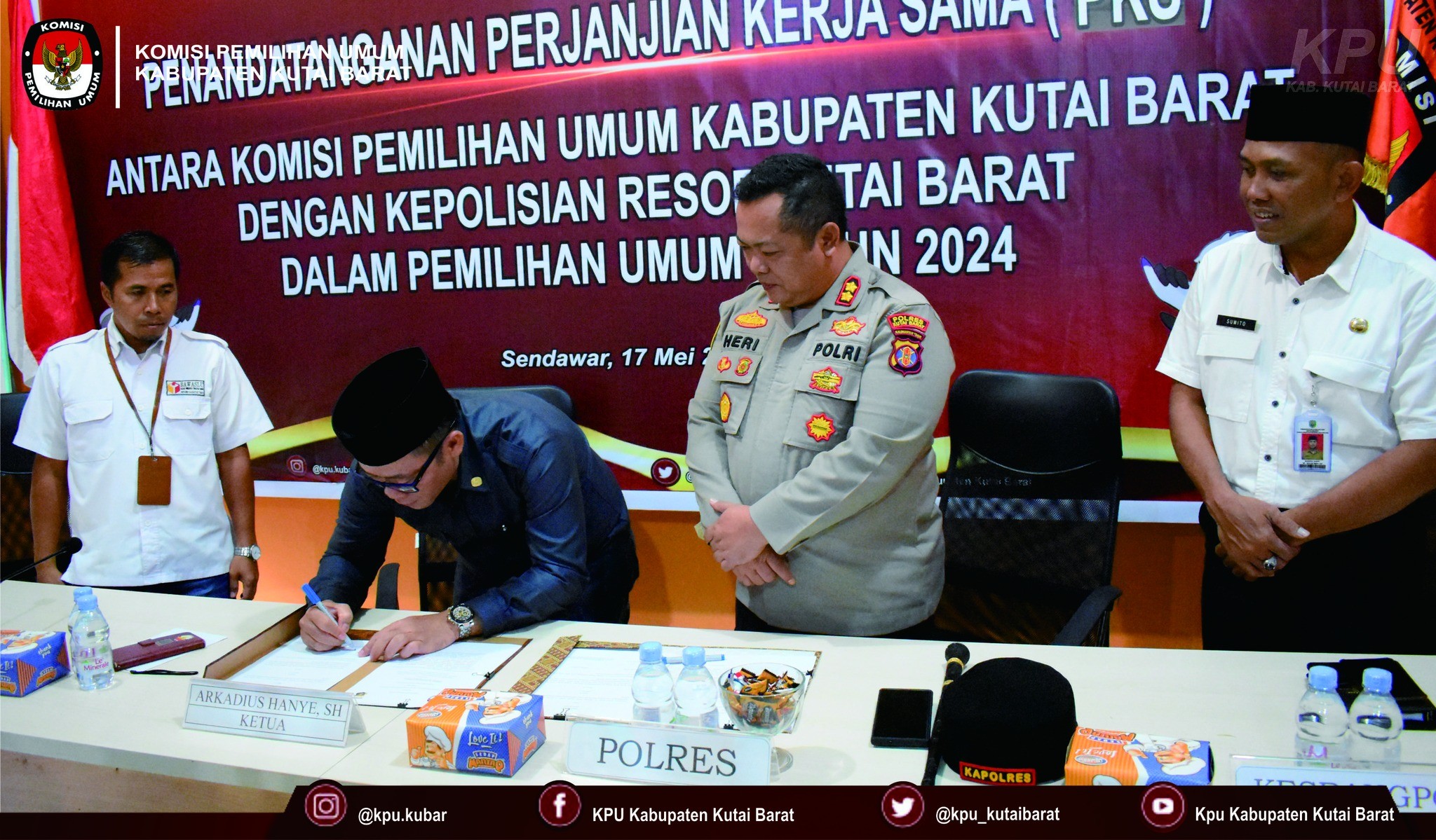 Bertempat di Aula Kantor KPU Kubar telah dilaksanakan Penandatanganan Perjanjian Kerja Sama antara Komisi Pemilihan Umum (KPU) Kabupaten Kutai Barat dengan Kepolisian Resor (Polres) Kutai Barat dalam Pemilihan Umum Tahun 2024, Rabu 17 Mei 2023