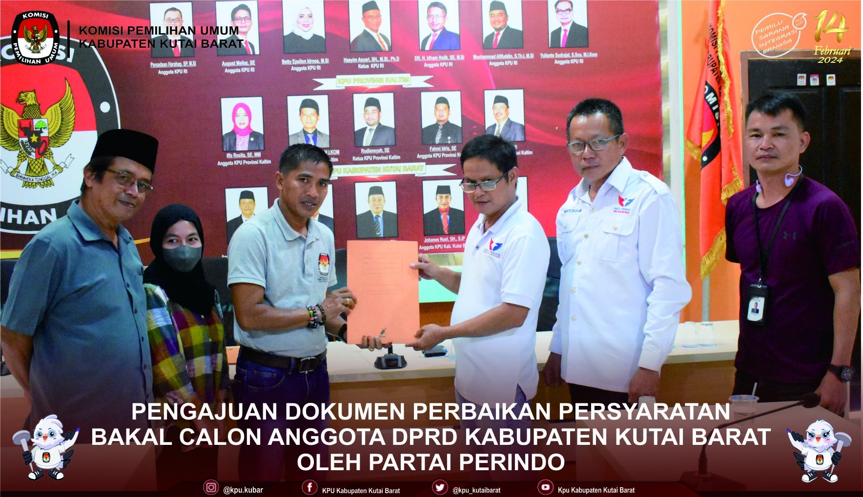 KPU Kabupaten Kutai Barat Menerima Pengajuan Dokumen Perbaikan Calon Anggota Dewan Perwakilan Rakyat Daerah (DPRD) Kabupaten Kutai Barat Pada Pemilu Tahun 2024 oleh Partai PERINDO.