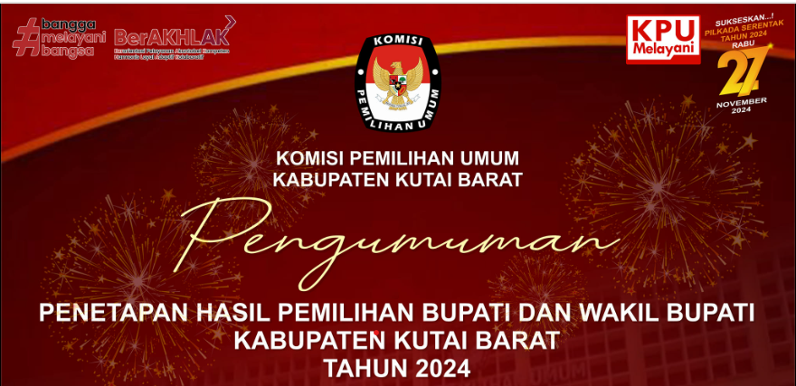 PENGUMUMAN PENETAPAN HASIL PEMILIHAN BUPATI DAN WAKIL BUPATI KAB. KUTAI BARAT TAHUN 2024