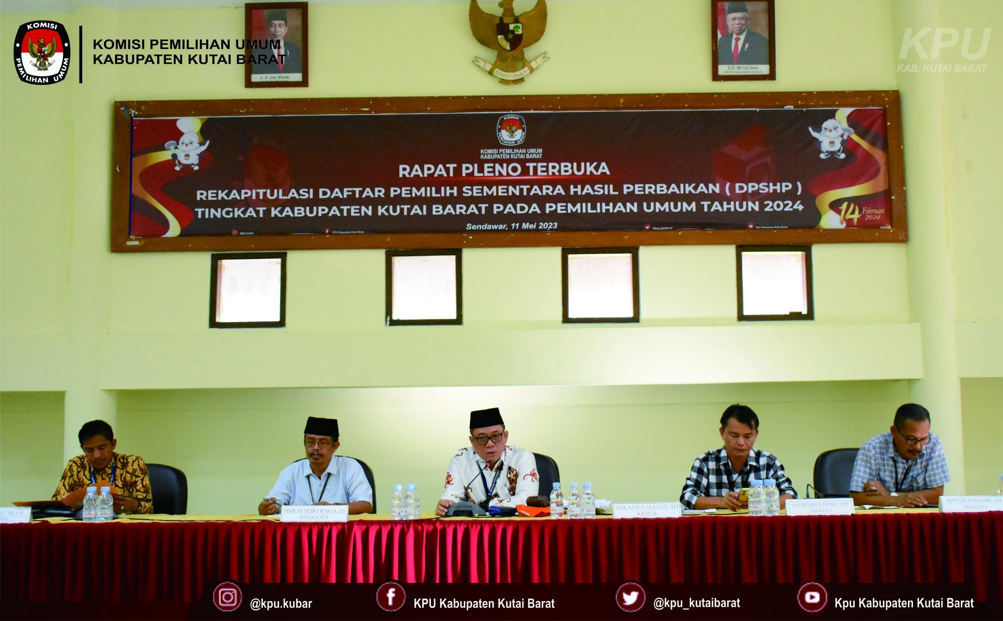 Bertempat di Aula kantor Bappeda Kutai Barat Komisi Pemilihan Umum (KPU) Kabupaten Kutai Barat menggelar rapat pleno terbuka rekapitulasi Daftar Pemilih Sementara Hasil Perbaikan (DPSHP) pada Pemilihan Umum Tahun 2024, Kamis (11/5/2023).