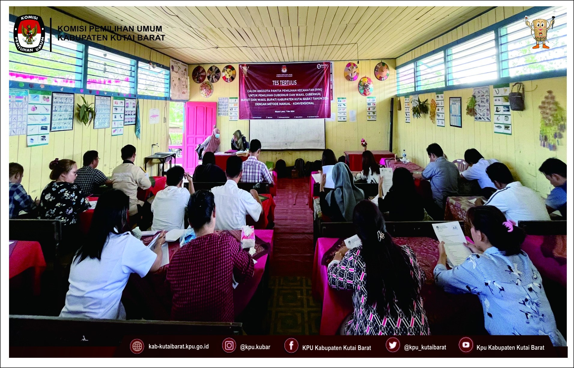 #TemanPemilih KPU Kabupaten Kutai Barat Melaksanakan Tes Tertulis Calon Anggota Panitia Pemilihan Kecamatan (PPK) unuk Pemilihan Gubernur dan Wakil Gubernur, Bupati dan Wakil Bupati Kabupaten Kutai Barat Tahun 2024 yang dilaksanakan serentak untuk 16 Kecamatan Se- Kabupaten Kutai Barat pada hari Selasa 7 mei 2024;